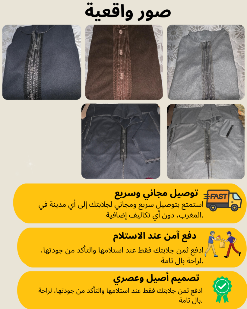 ⭐ بصراحة، أحسن جلابة شريتها. اللون هو هو اللي فالتصويرة، وحتى بعد الغسيل بقات كيفما هي بلا ماتكمش ولا تبدل. أنصح بها بزاف، تستاهل كل درهم.